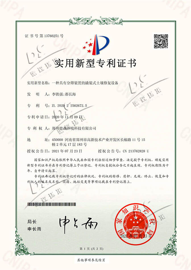 涉及包括有机类、重金属污染场地修复、石油污染土壤修复、尾矿库修复等专业环保装备的纵深研发,不断打磨提升自身研发技术。